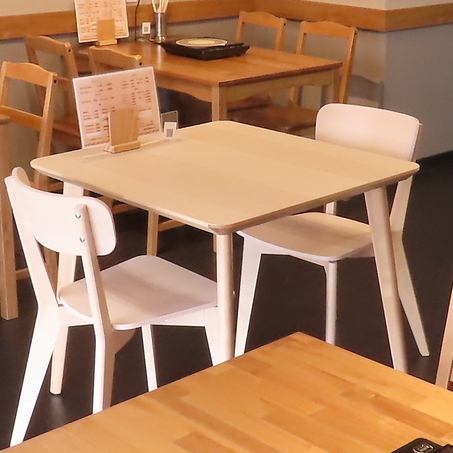 【デート利用にも◎】2名様掛けテーブルはカップルにおすすめ。リラックスできる店内で、大切な人と素敵な時間を。
